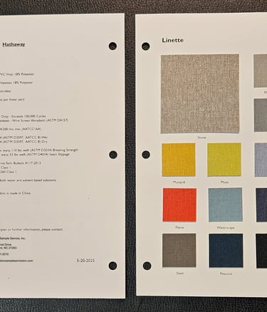 Swatch cards, chain sets, and hanging samples crafted with care.